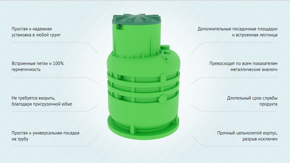 Кессоны Термит версии 2-5 производятся методом ротационного формования из линейного полиэтилена без единого сварного шва и являются лучшим решением для защиты и эксплуатации скважины.